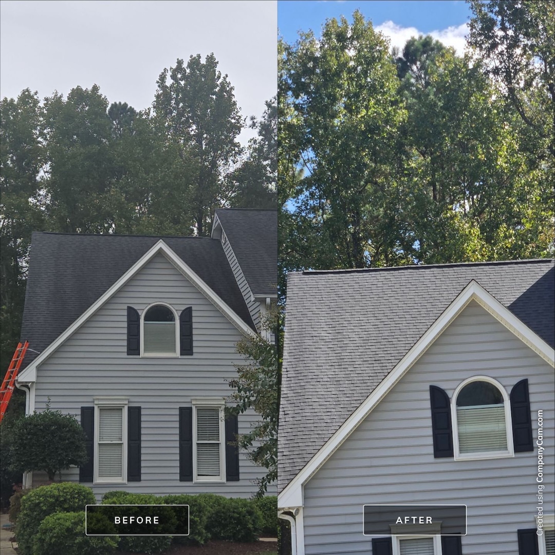 A homeowner in Wake Forest reached out after noticing dark streaks forming across their roof. Like many homes in the area, algae and buildup had started to make the shingles look worn and uneven.